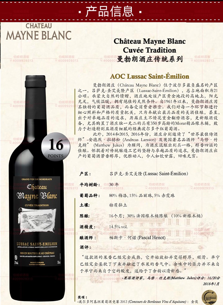 • 酒庄名称:Chateau Mayne Blanc Cuvee Tradition
