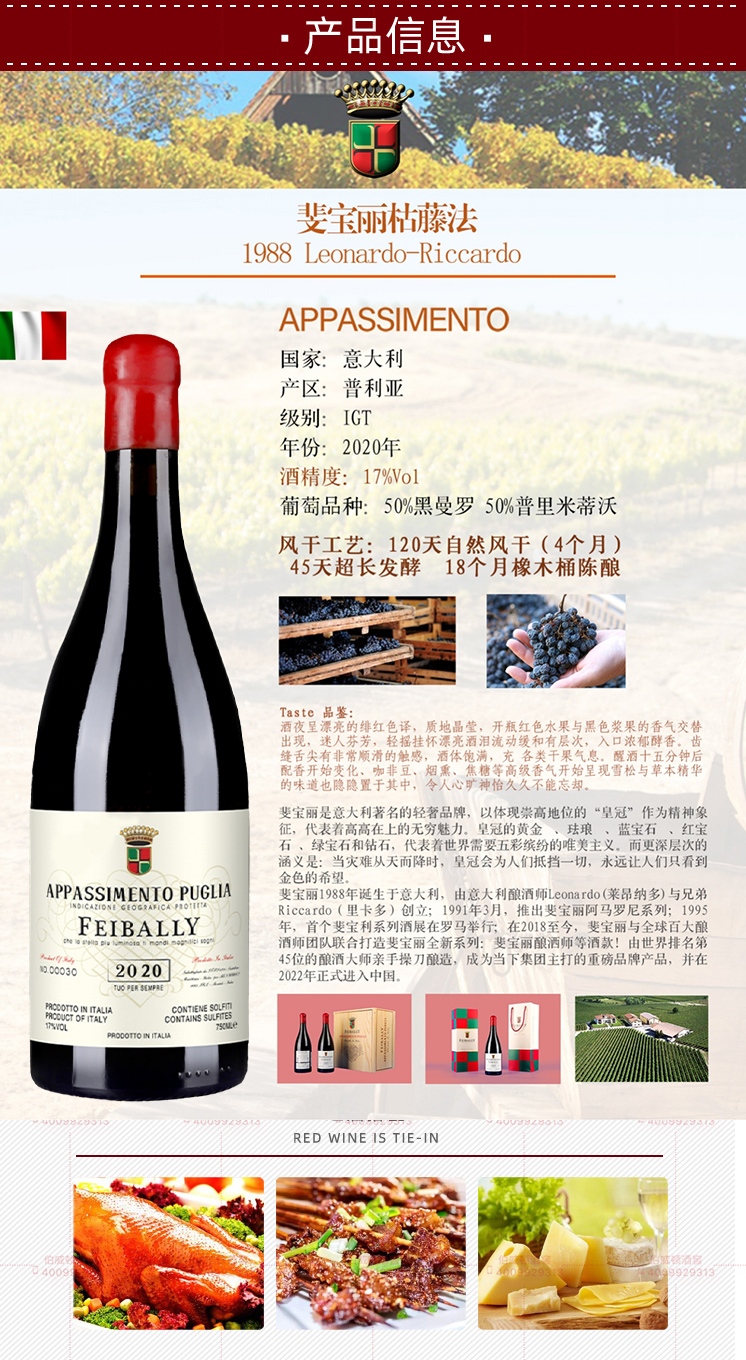 • 酒庄名称:APPASSIMENTO PUGLIA FEIBALLY