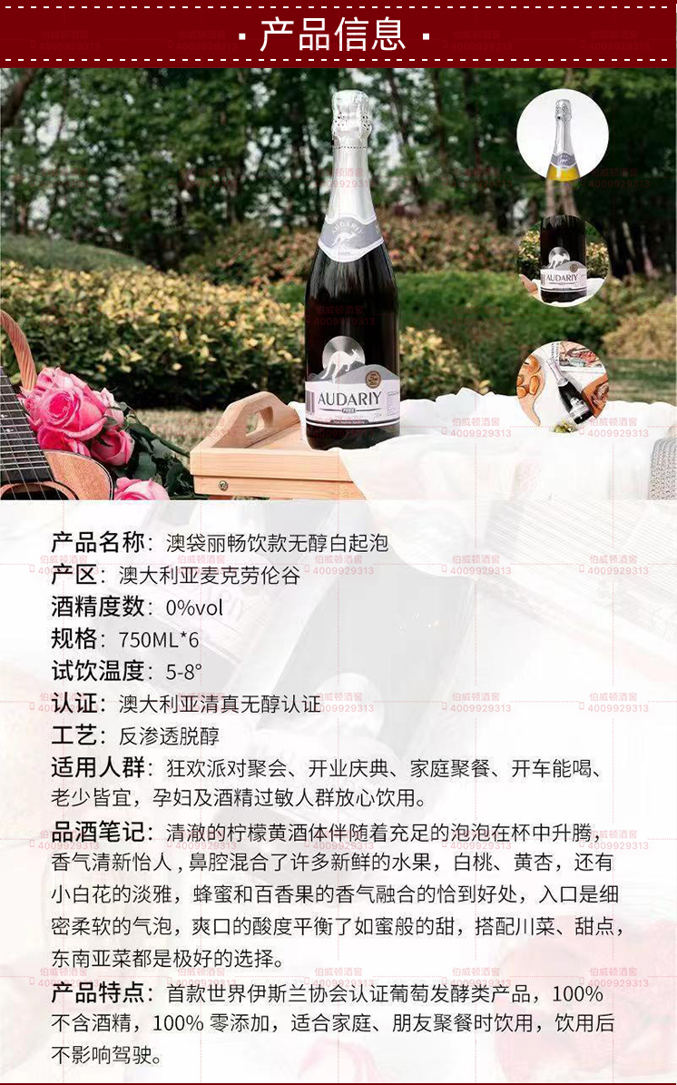 澳洲澳袋丽畅饮无醇白汽泡酒