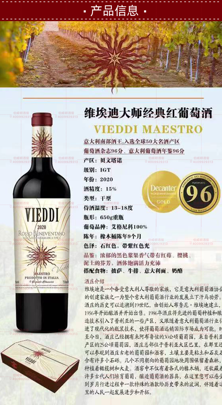 意大利维埃迪大师經典红葡萄酒