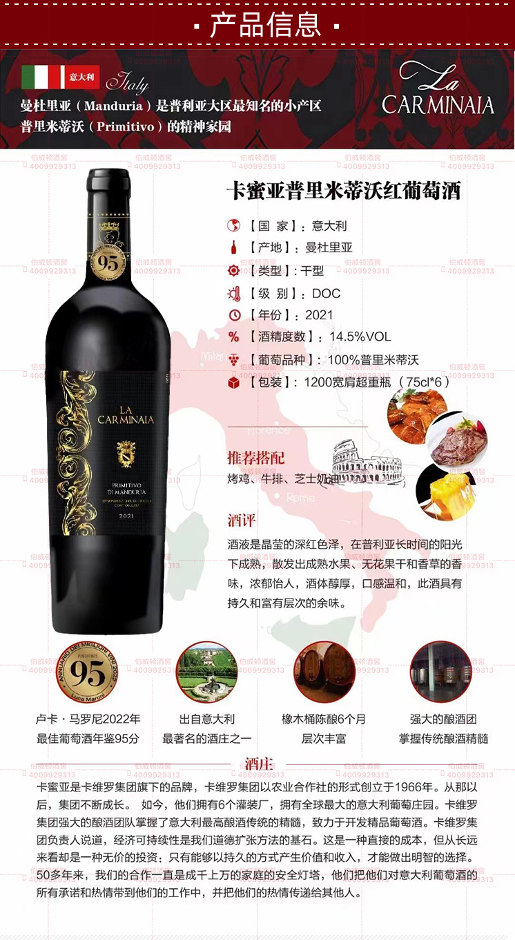 意大利卡蜜亚普里米蒂沃红葡萄酒