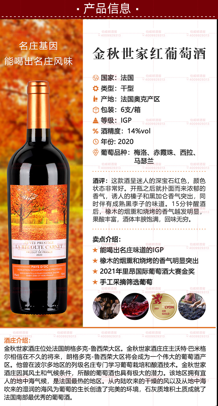法国金秋世家红葡萄酒