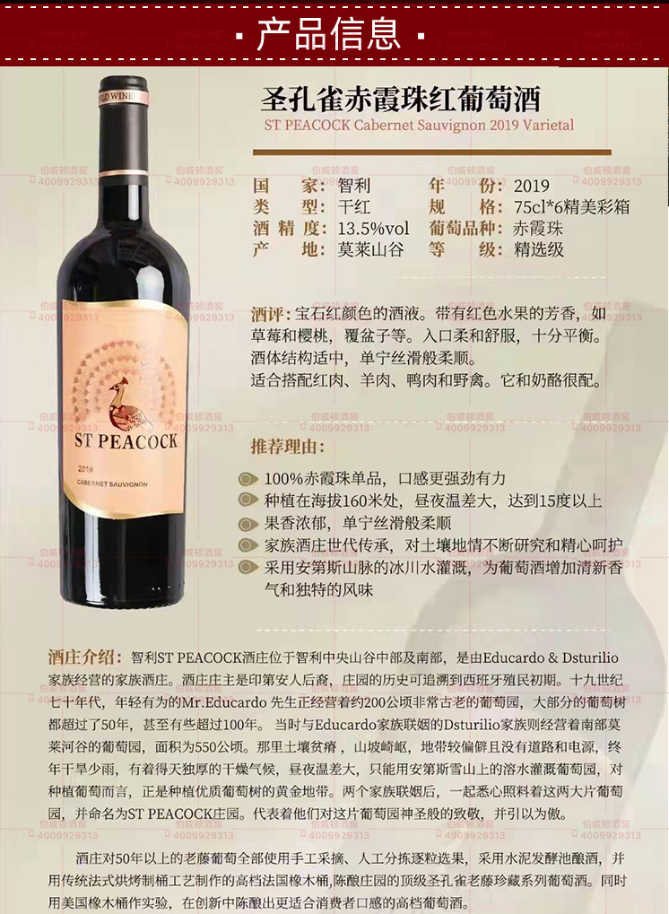 • 酒庄名称:ST. PEACOCK CABERNET SAUVIGNON