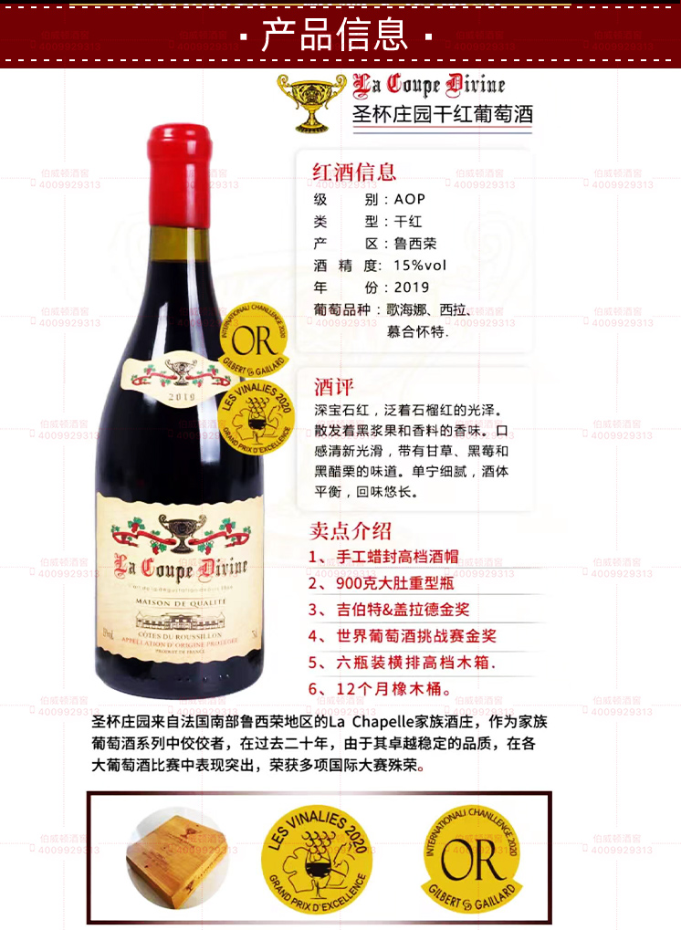 • 酒庄名称:LA COUPE DIVINE